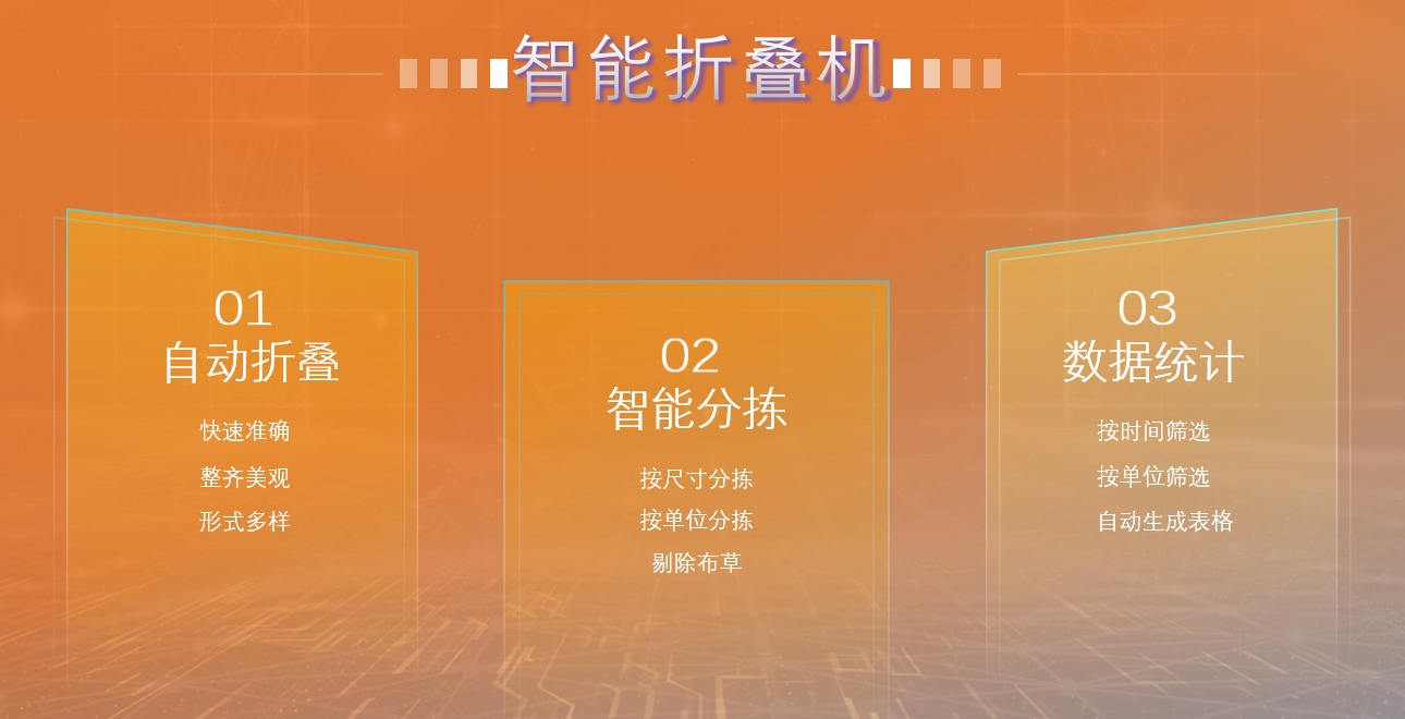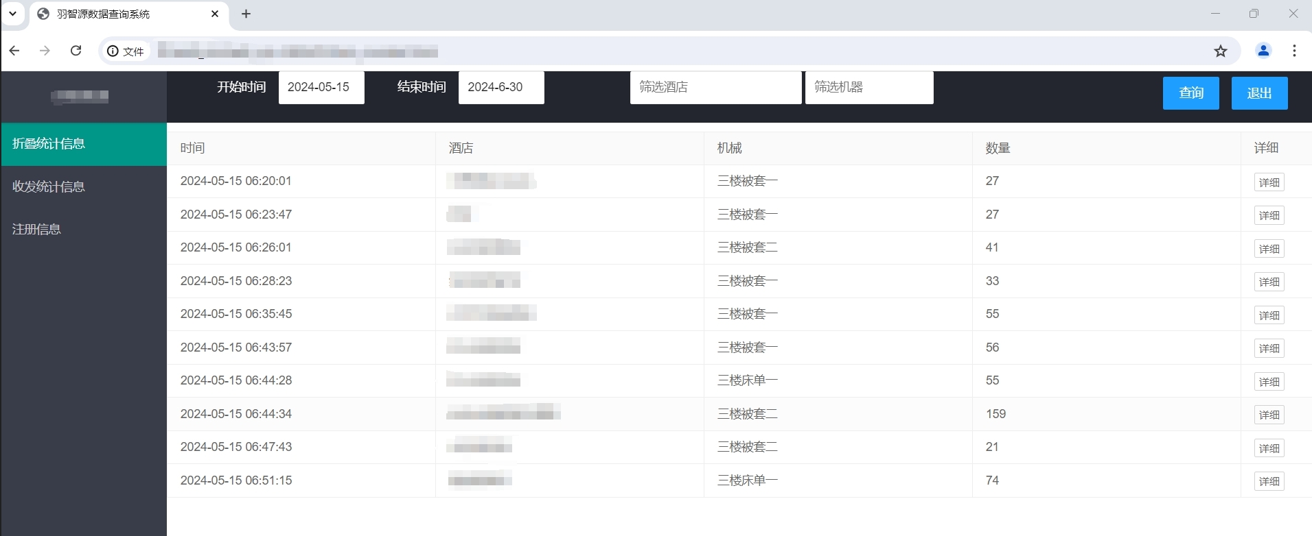 如今洗涤工厂都在使用自动折叠机械提升效率,目前市场上普遍使用的机械设备是单纯的折叠,在智能化的大时代趋势下,现在羽智源软件公司和生力折叠机械厂合力推出智能折叠机,除了传统折叠功能外,增加了智能分拣和布草数据统计功能。在羽智源提供的网站可查询和盘点布草洗涤数据。